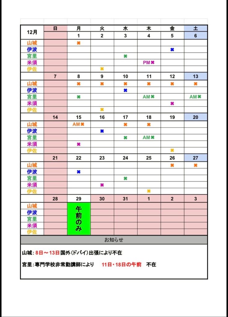 ⛄️ 12月の営業日およびスタッフスケジュールのお知らせです 🗓️
